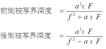 前側・後側の被写界深度は、次式で求まります。
