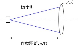 対物レンズから物体までの距離を作動距離:WDといいます。
